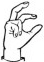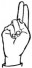 На ћирилици написано БУДИМИР ЗЕЧЕВИЋ састоји се из 14 слова [?]. Исписано ћириличном једноручном азбуком за глувонеме: